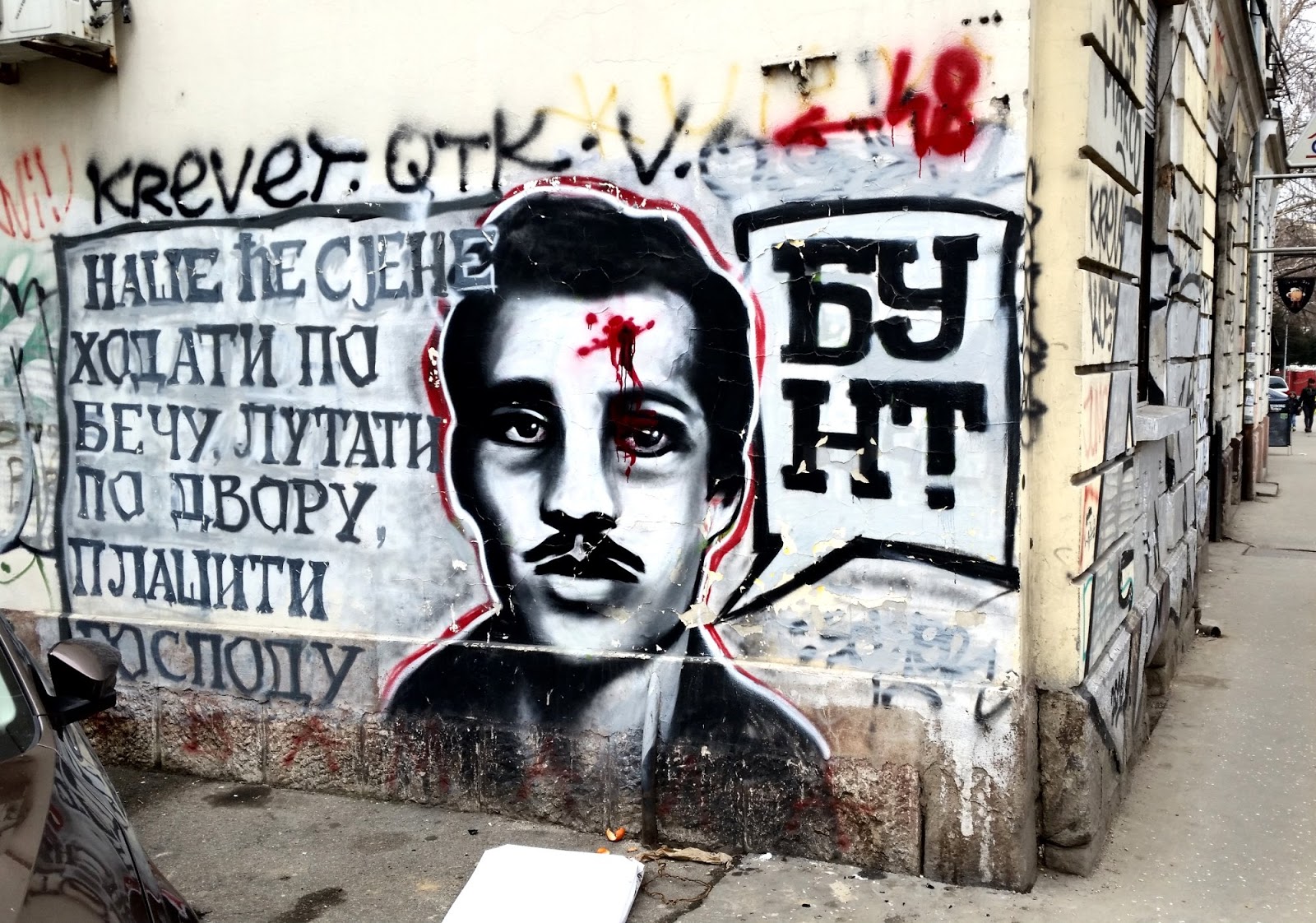 Nobody seems to know who this artist is - I have asked several people - including art gallery staff and even asked t at the Tourist Information Bureau - but to no avail ... his / her paintings of well-known Serbs are all over the place ... the likes of sports stars, musicians, politicians, movie stars, gangsters etc ... The artist puts the logo Grup JNA on the paintings - and my research tells me that is punk musician Dete Partizana- so maybe he is also the artist ... I'll solve the mystery eventually ...